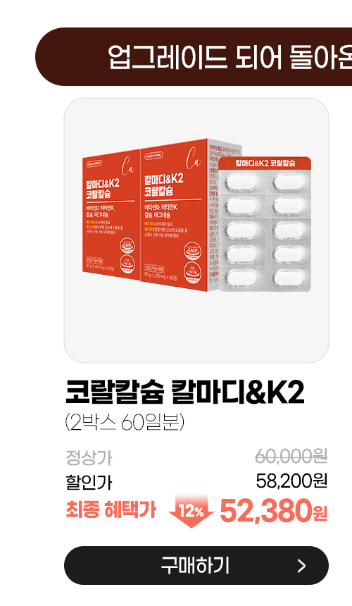 - 그린스토어 칼마디&비타민K2 코랄칼슘(1개월분x2박스)