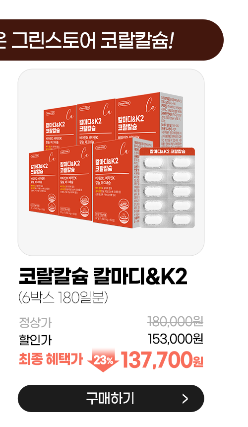 - 그린스토어 칼마디&비타민K2 코랄칼슘(1개월분x6박스)
