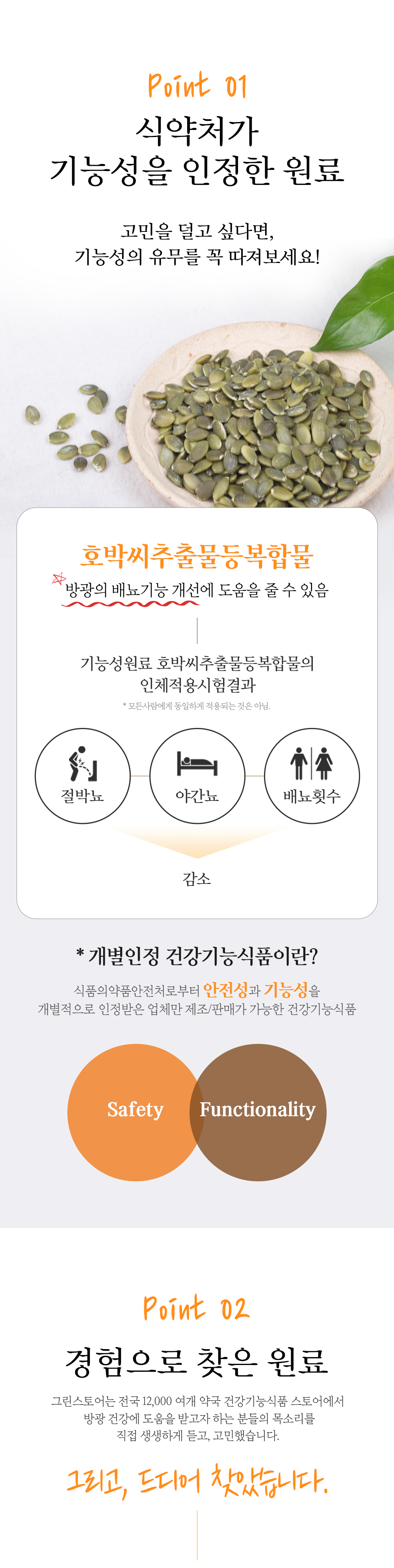 | 기능정보 | [호박씨추출물등복합물] 방광의 배뇨기능 개선에 도움을 줄 수 있음 |