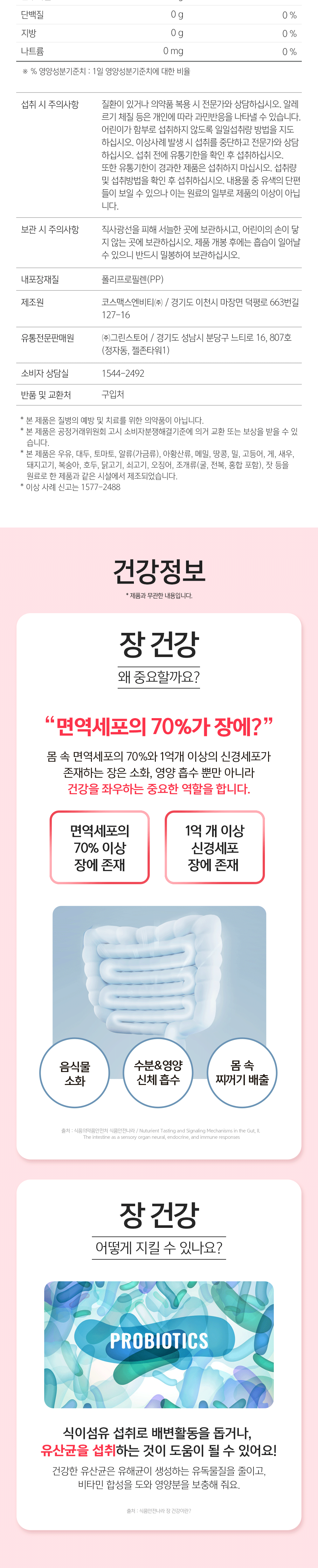| 기능정보 | [프로바이오틱스] 유산균 증식 및 유해균 억제·배변활동 원활·장 건강에 도움을 줄 수 있음 |