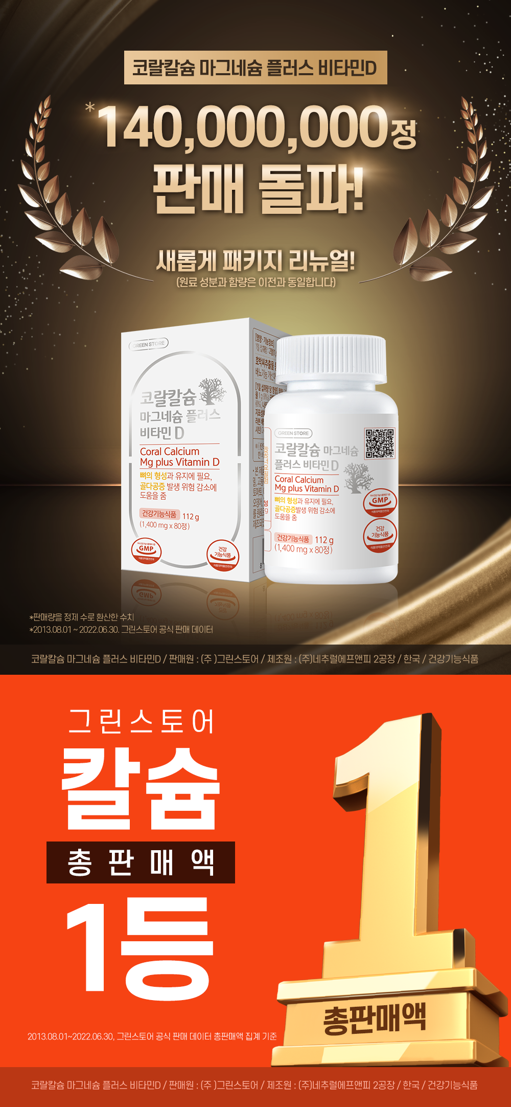 | 제품명 | 코랄칼슘 마그네슘 플러스 비타민D(40일분x1개) |
