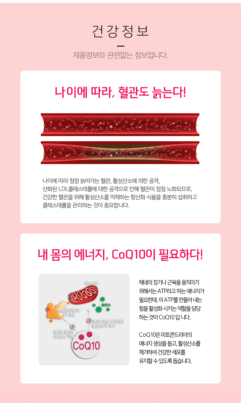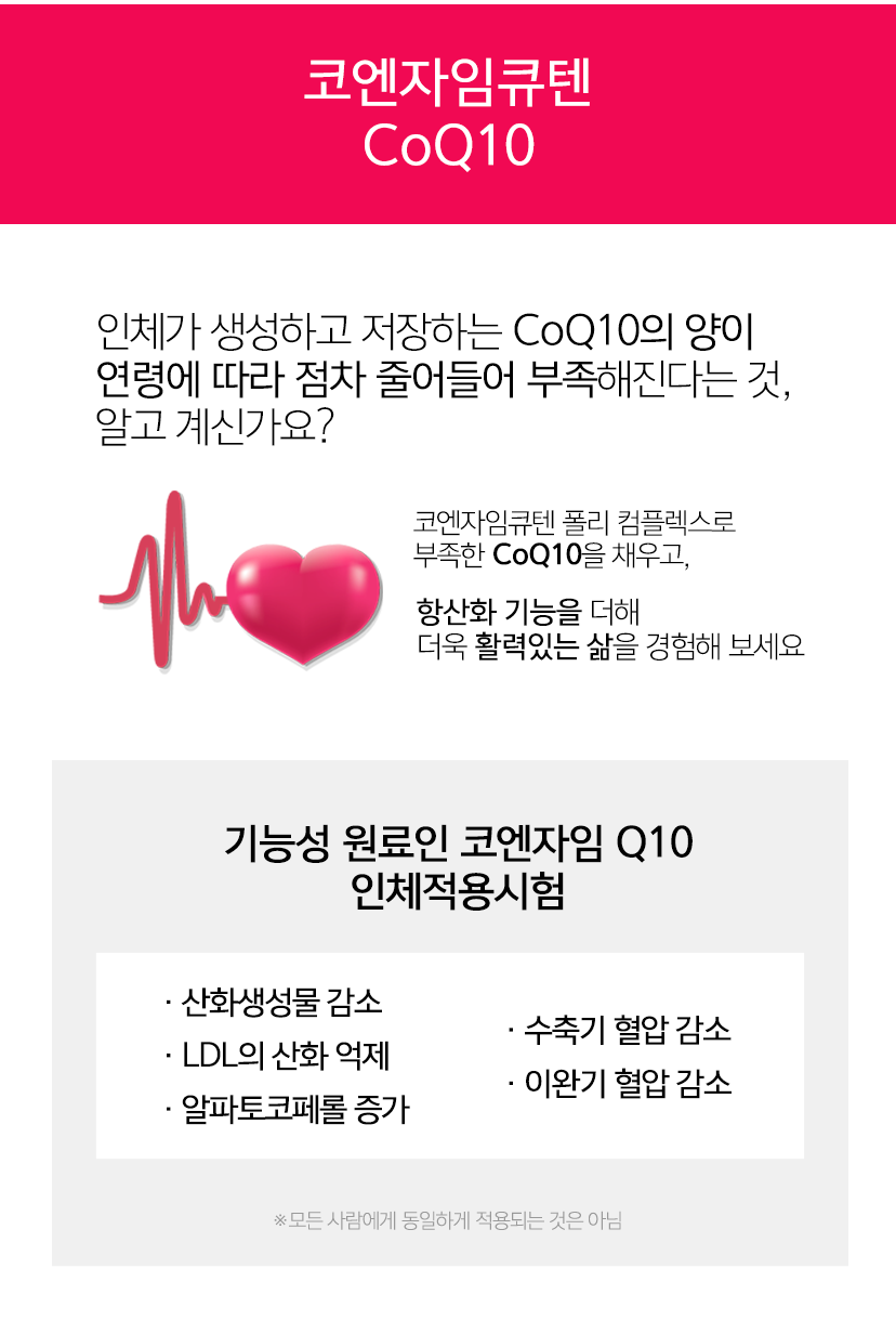 | 기능정보 | [코엠자임Q10] 항산화·높은 혈압 감소에 도움을 줄 수 있음 |