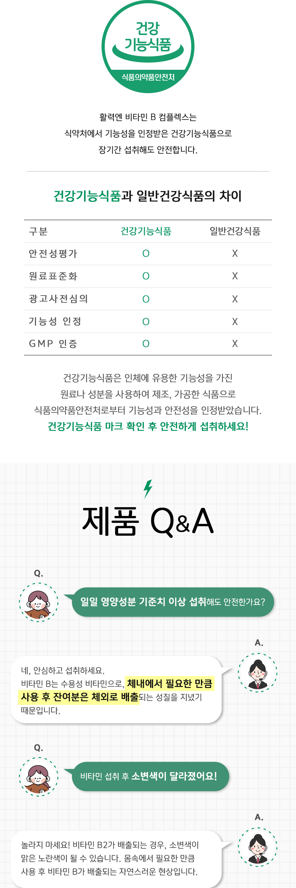 | 소비자안전을 위한 주의사항 | ·유통과정 중 제품에 이상이 있는 경우에는 공정거래위원회 고시 소비자분쟁해결기준에 의거 교환 또는 보상 받을 수 있습니다. ·본 제품은 알류(가금류), 우유, 메밀, 땅콩, 대두, 밀, 고등어, 게, 새우, 돼지고기, 복숭아, 토마토, 호두, 닭고기, 쇠고기, 오징어, 조개류(굴, 전복, 홍합 포함)를 원료로 한 제품과 같은 제조시설에서 제조되었습니다. ·본 제품은 질병의 예방 및 치료를 위한 의약품이 아닙니다. ·이상사례 신고는 1577-2488 / (표시광고 사전심의필 : 200611256) |